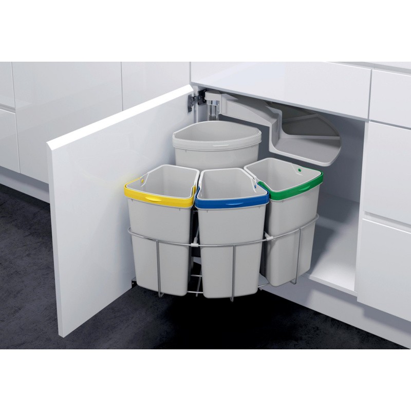 Przejrzysta segregacja odpadów — osobne pojemniki umożliwiają łatwe oddzielanie różnych typów odpadów.