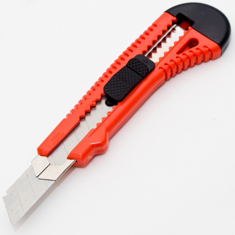 Nóż do tapet, w zestawie z wymiennym ostrzem, dostępny w 4 wariantach kolorystycznych – niebieski, żółty, czerwony, zielony
