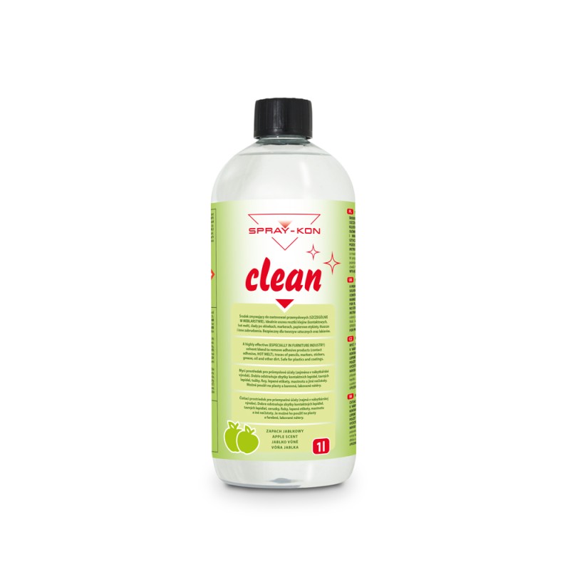 Profesjonalny i wszechstronny środek czyszczący do zastosowań głównie w przemyśle meblarskim ale i wielu innych. Przeznaczony jest do czyszczenia i odtłuszczania płyt meblowych, laminatów HPL, obrzeży wykonanych z PCV i ABS, powierzchni akrylowych* oraz stali. Zmywacz Clean dzięki specjalnie dobranemu składowi jest bezpieczny dla lakierów i tworzyw sztucznych a po wypolerowaniu nie pozostawia smug, nawet na czarnych elementach z połyskiem.