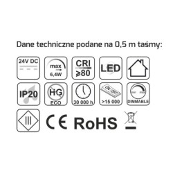 Taśma COB 240 LED/0,5 m, o mocy 6,4W/0,5 m bez żelu, ze standardowym stopniem ochronności IP20 świecąca jednolitą linią światła