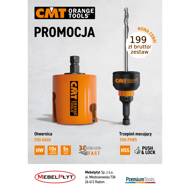 ZESTAW OTWORNICA FI 60 + WIERTŁO PUSH & LOCK MARKI CMT