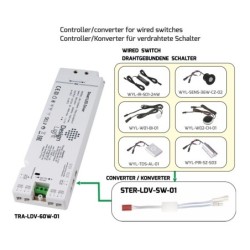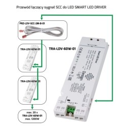 SMART LED DRIVER to zasilacz z wbudowanym modułem sterującym. Jego maksymalna moc to 60W. Istnieje możliwość rozbudowy o kolejne zasilacze do max. 20 szt. oraz dedykowane akcesoria do SYSTEMU SMART.